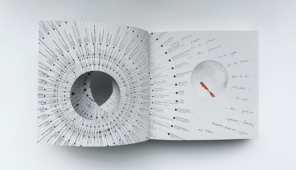 First Print Addition.Published in association with a retrospective exhibition opening at Cooper Hewitt, Smithsonian Design Museum in New York in November 2023, An Atlas of Es Devlin is a unique, sculptural volume of over 900 pages, including foldouts, cut-outs, and a range of paper types, mirror and translucencies, with over 700 color images documenting over 120 projects spanning over 30 years, and a 50,000 word text featuring the artist’s personal commentaries on each art work as well as interviews with her collaborators including Hans Ulrich Obrist, Bono, Benedict Cumberbatch, Pharrell Williams, Carlo Rovelli, Brian Eno, Sam Mendes, Alice Rawsthorn, and Abel "The Weeknd" Tesfaye. Each book is boxed and includes a die-cut print from an edition of 5000.